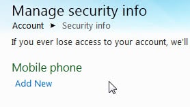 If you have not linked a mobile phone number to your Windows Live account yet you can do so in the account settings. Open the link and enter your standard login information. Click on the Manage link next to Security Info on the page and then on Add New below Mobile Phone on the next page.